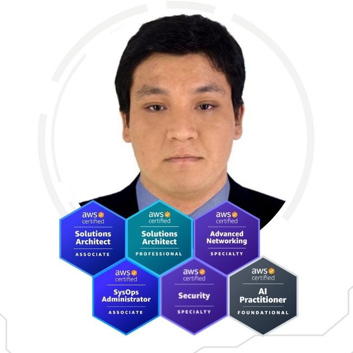 Especialista en AWS con más de 5 años de experiencia profesional. Actualmente se desempeña como Arquitecto de soluciones Cloud, redes de datos y servicios de TI a nivel Lan y Wan en la empresa ITSTK Technology. Tiene certificaciones internacionales: AWS Certified Solutions Architect – Professional, AWS Certified Solutions Architect – Associate, AWS Certified Security – Specialty, AWS Certified SysOps Administrator – Associate, AWS Certified Advanced Networking – Specialty
