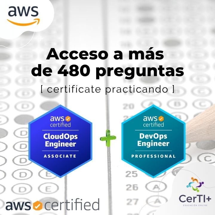 - Acceso al simulador de los exámenes AWS Certified DevOps Engineer – Professional (DOP-C02) y AWS Certified CloudOps Engineer (SOA-C03).