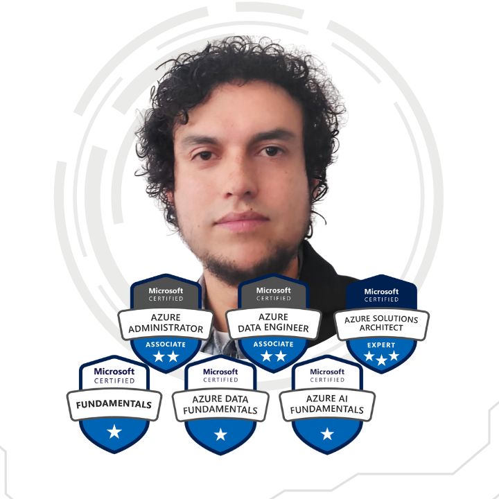 Docente certificado en Azure con 4 años de experiencia profesional. Actuamente se desempeña como consultor Microsoft Azure SWATe instructor de Azure en Intelligent Training, además como instructor y mentor de Microsoft Azure en Alkemy, entre otros. Tienecertificaciones internacionales: Microsoft Certified Azure Fundamentals, Microsoft Certified Azure Data Fundamentals, Microsoft Certified Azure AI Fundamentals, Microsoft Certified Azure Administrator Associate, Microsoft Certified Azure Data Engineer Associate.