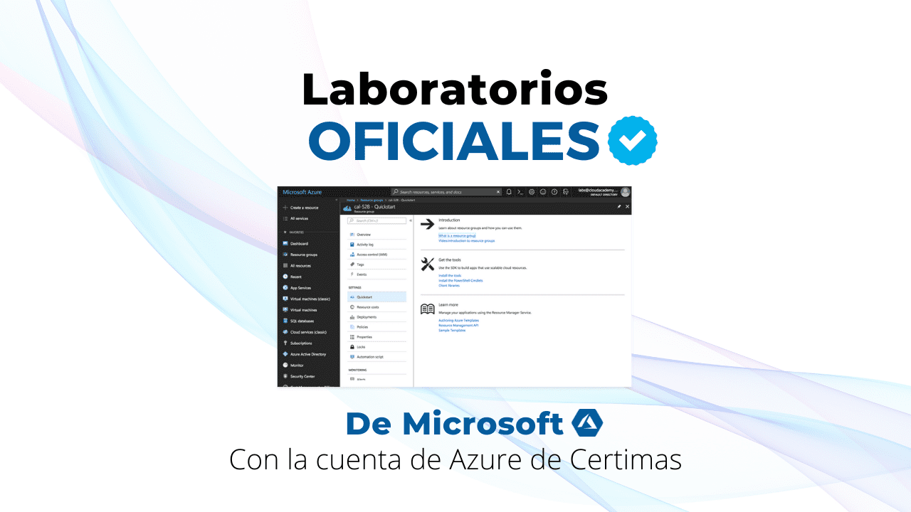 Vas a poder practicar en la Consola de Azure desde la cuenta de Certimas y podrás hacer los laboratorios oficiales recomendados para cada una de los exámenes de certificación de Azure.