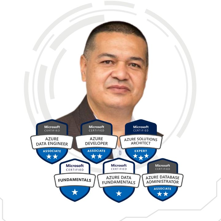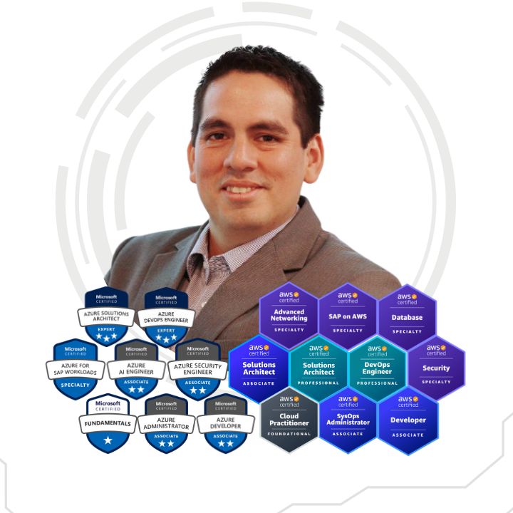 Docente certificado en Azure con 15 años de experiencia profesional en administración, arquitectura y seguridad en Azure y Microsoft 365. Además trabaja como Consultor e Instructor de Plataformas Microsoft en Advance Learning, SkillSoft y NETEC. Tiene certificaciones internacionales: Microsoft Certified Azure Fundamentals, Microsoft Certified Azure Data Fundamentals, Microsoft Certified Azure Database Administrator, Microsoft Certified Azure Data Engineer, Microsoft Certified Azure Developer y Microsoft Certified Azure Solutions Architect Expert