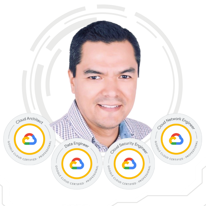 Experto certificado en Google Cloud con más de 5 años de experiencia como Arquitecto de Soluciones y cloud con experiencia en SOA, API y microservicios en arquitecturas híbridas y multicloud. Actualmente se desempeña como Consultor de Devops Latam en Orbisdata. Tiene las siguientes certificaciones internacionales: Google Cloud Architect, Google Cloud Developer, Google Cloud Security Engineer, Google Cloud DevOps Engineer, Google Cloud Engineer, Google Cloud Digital Leader.