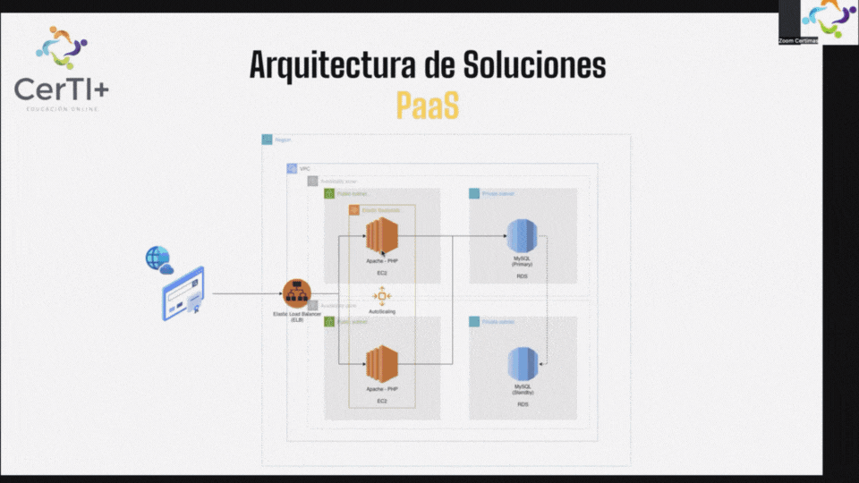 Conoce paso a paso como implementar una arquitectura de Infraestructura como Servicio (IaaS) usando los servicios de VPC, EC2, ELB, AutoScaling y EBS.