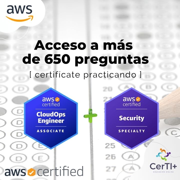 - Acceso al simulador del examen AWS Certified CloudOps Engineer – Associate y AWS Certified Security - Specialty.
